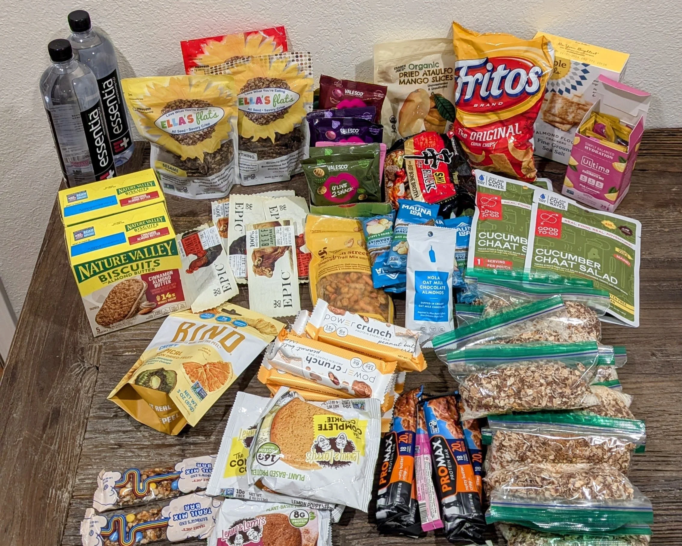 Some of my favorite snacks on trail. I try to stick to high protein meals. I learned the hard way that I usually crave salty, crunchy foods rather than sweet protein bars.